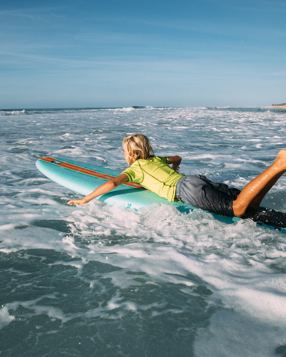 The Daily 7’6″ (2.28 cm) board is a performance-focused soft-top surfboard for both beginners and experienced surfers alike. For beginners, this board is durable and easy to maneuver, great for learning and developing your skills. More advanced surfers will love the longboard shape on a 7’6″ board to gather speed in proper swells. The Daily features 3 removable, tool-less plastic fins. Each fin is made from ultra-durable plastic giving you a safe and strong fin that will last you for the life of your board. LIGHTWEIGHT: The Daily is extremely lightweight allowing for an effortless ride. DURABLE: The removable fins on the Daily are made from ultra-durable plastic, so you can have no worries on your way back to shore. STABLE: The Daily is suitable for all levels, from beginners to experienced surfers. It is stable without sacrificing performance. Leash