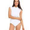 The Smoothies collection is Body Glove’s classic solids swimsuit line available in an array of colors and unique styles of tops, bottoms, and one pieces. Mix and match them with other prints or wear as a pair, the combinations are endless! Dive into sun-soaked adventures with our one-piece swimsuit, Manny. Enjoy UPF 50 sun protection, cap sleeves, and a mock neck for style and safety. The zip front detail adds convenience, while flatlock seams ensure ultimate comfort. Embrace the water with full coverage and complete confidence. One-piece UPF 50 Cap sleeves Zip front detail Mock neck Flatlock seams Textured knit fabric Full coverage